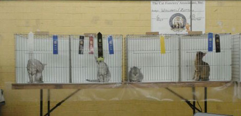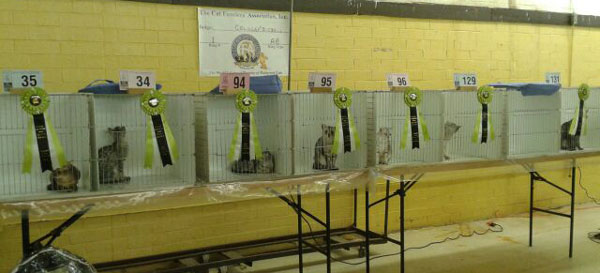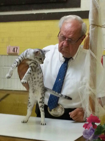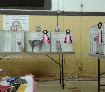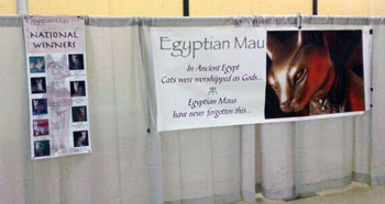 Our eleventh annual GEMS (GLOBAL EGYPTIAN MAU SOCIETY)show is now in the books so to speak... On Saturday 32 Egyptian Maus were entered and on Sunday 22 Egyptian Maus were entered. Many thanks to the breeders and exhibitors who took the time and effort to bring their lovely cats to support the breed club show. It was a real pleasure to see all three colors represented and to welcome a number of new exhibitors. Top three cats in all three categories over the 12 rings were awarded by Wain Harding on Sunday at the conclusion of judging. Please join me in congratulating the lovely cats that earned these honors...