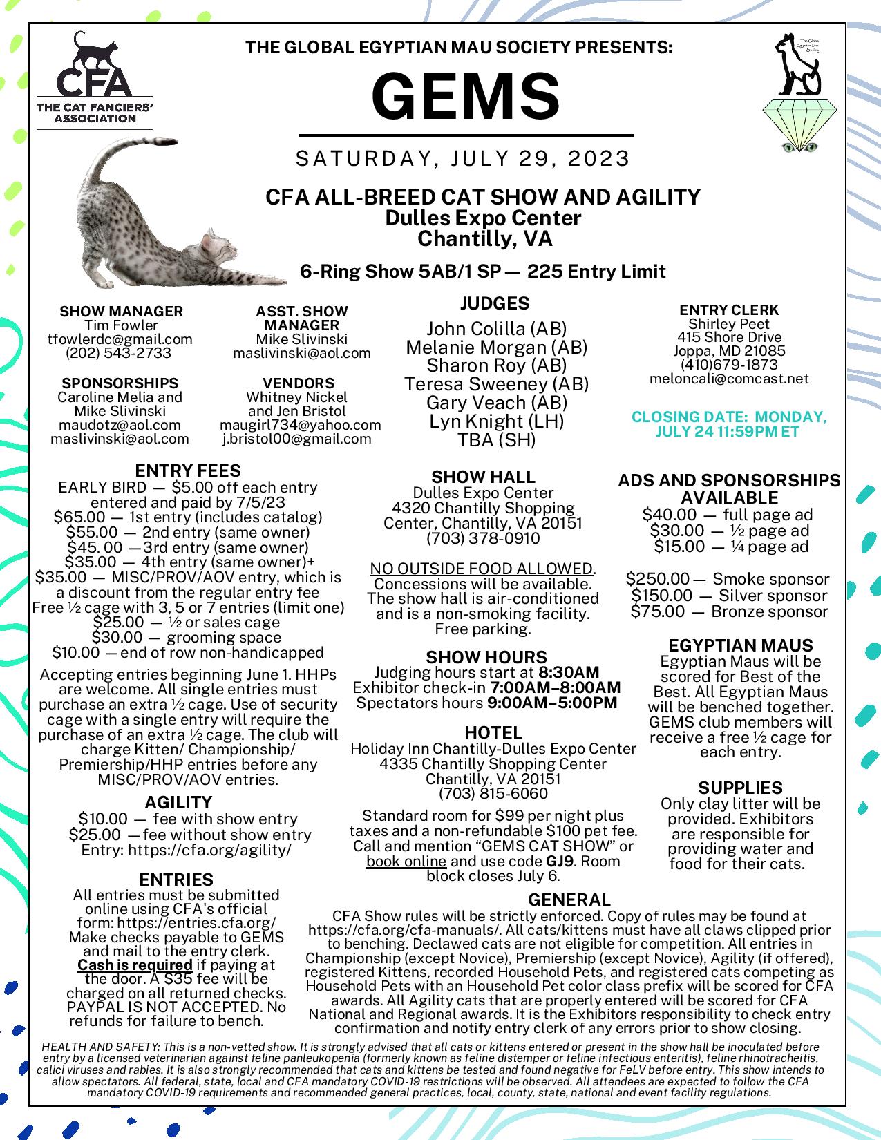 Note: All pictures and graphics are copyrighted by GEMS, The Owners of the cats or individual photographers. No part of this web site may be reproduced in any form or by any means without written permission from GEMS and the owner of the pictures. Go to PHOTO CREDITS | ![]() |