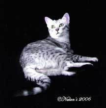 GC Lisimba Hatsheasut Silver female 0843-1506771 DOB 03/28/04 Sire: Lisimba Land-Of-Pharohs Breeder: Robin M. Ney |
