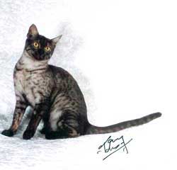 GC Maume's Spotted Sphynx Bronze female 0845-1560304 DOB 11/15/05 Sire: GC RW Sharbees Rusty Waters of Maume Breeder/Owner: M. and V. Michaels |