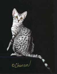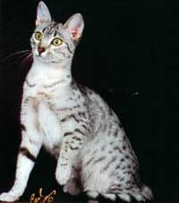 GC BW RW Brockhaven Osira Silver female 0843-1103009 DOB 9/17/96 Sire: GC Brockhaven Mamnoonan Breeder/Owner: Dot and Guerdon Brocksom "CFA's Best Egyptian Mau in the 1997-1998 show season" |