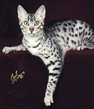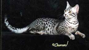 GC RW Ocali Spots Off the Dice of Matiki Silver male Granded September 1997 "Best Egyptian Mau in Championship at the 1997 CFA International Show" |