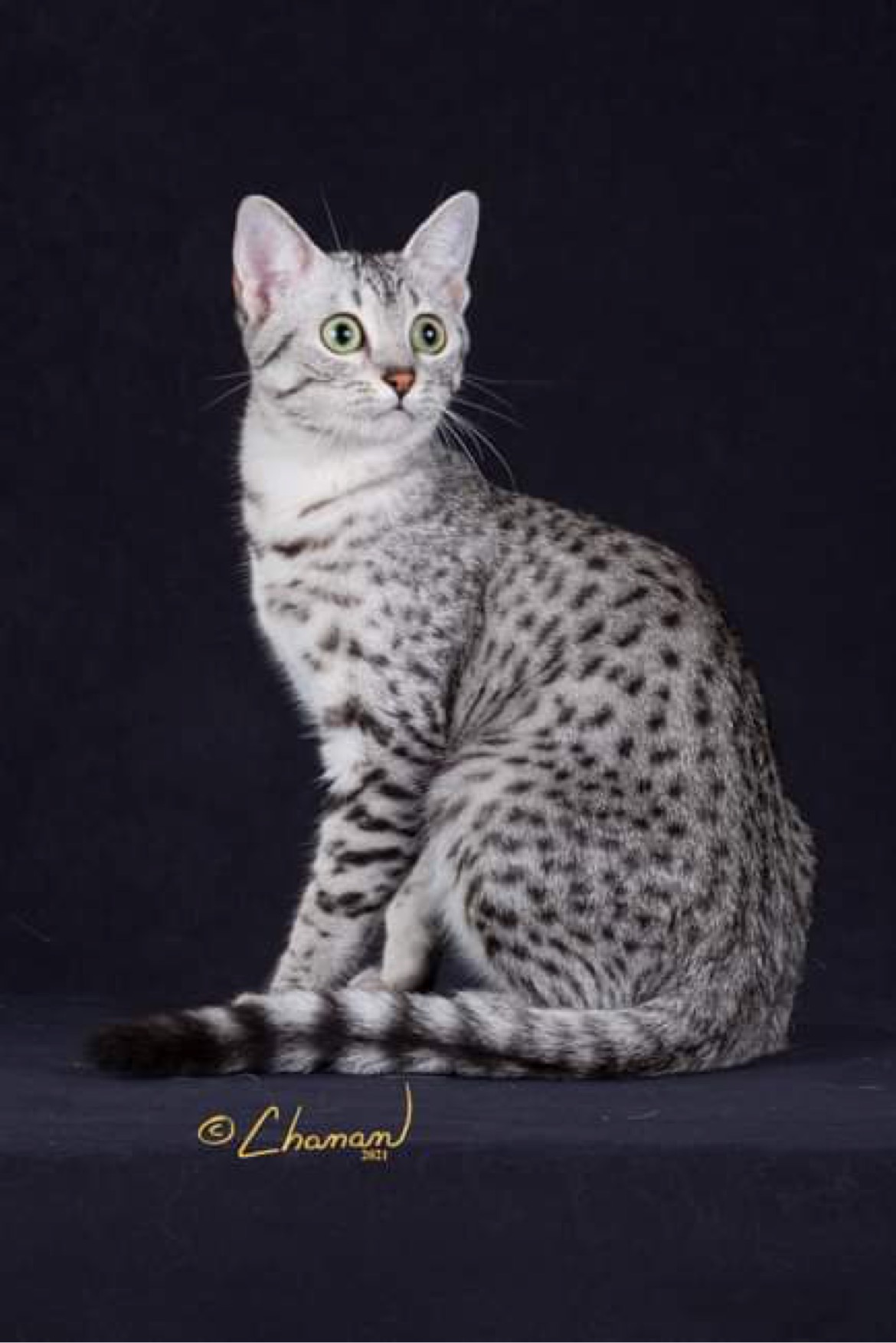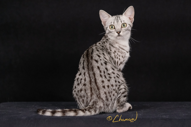 GC NW Freckles Dot Matrix of Raceykat Silver female Sire: GC Sanish Twice a Brat Breeder/Owner: Bruce and Sue Johnson |